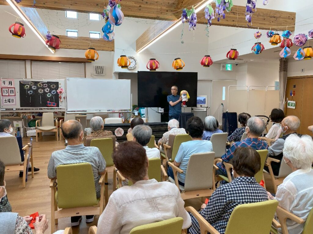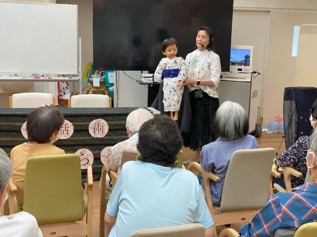 2025.9.19 ぽれぽれケアセンター青山 「腹話術のさくらぐみさんが来てくださいました」 ご利用者のみなさんも腹話術に興味津々で 目を見開いておられました。 お人形の動きなど可愛らしさに癒されます。 (ぽれぽれ青山・デイサービス)