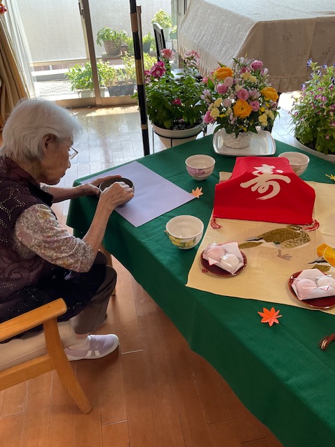 抹茶を点てて頂き、紅白まんじゅうと一緒に頂きました〜♪