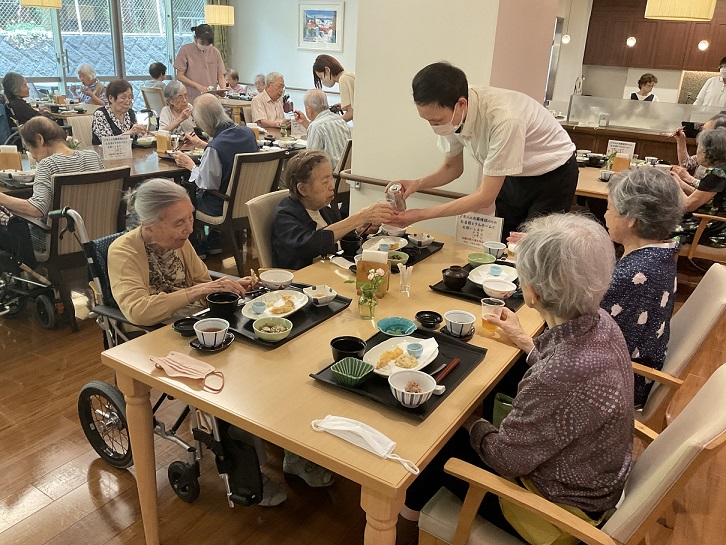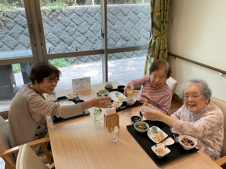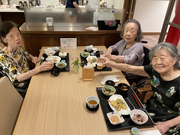敬老のお祝い献立の時に、ノンアルコールビールで乾杯されました。