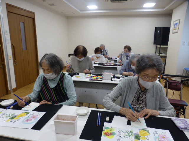 2025.9.23 ぽれぽれ学園前レジデンス 絵手紙教室 今月のテーマは秋の花。 参加者も沢山増えて「楽しい~、もっと描きたい!」 と皆様とても意欲的に描かれてました。 それぞれの作品を見ながら「いいわね、上手よ!」と 皆さまで褒め合う、和やかな雰囲気でした。 (ぽれぽれ学園前レジデンス)