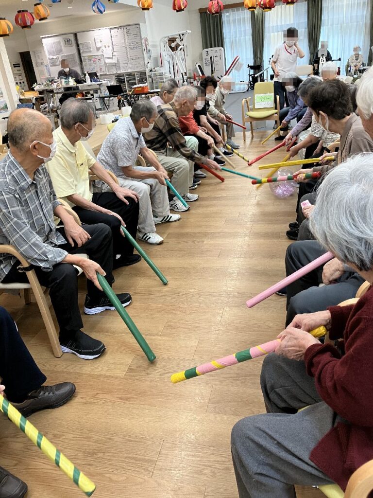 2025.10.3 ぽれぽれケアセンター青山 身体を動かして、リフレッシュ 上下肢運動レクリエーションでホッケーをしました。 あまりの激しさに職員もビックリです。 (ぽれぽれケアセンター青山・デイサービス)