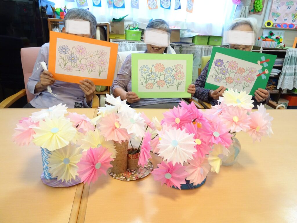 2025.10.3 ぽれぽれ四条大路 秋桜で秋を感じましょう☆ もうすぐ咲く事を願って、秋桜を作って下さいました。 毎年、皆様コスモス畑を楽しみにされています。 「今年も、いっぱい咲くといいですね~♪」と会話も弾み、和気あいあいと楽しい雰囲気で取り組まれていました。 (ぽれぽれ四条大路)