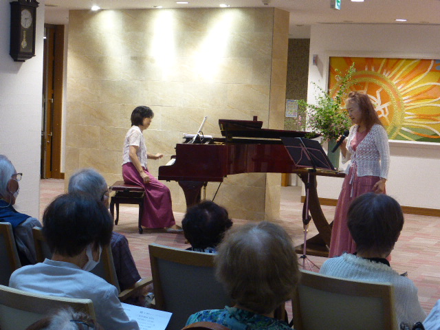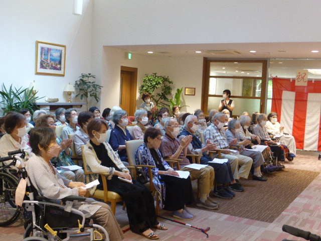 季節の移りかわりを感じるコンサートでした。 そのあと、白寿のご入居者にお祝い状の授与式も執り行いました