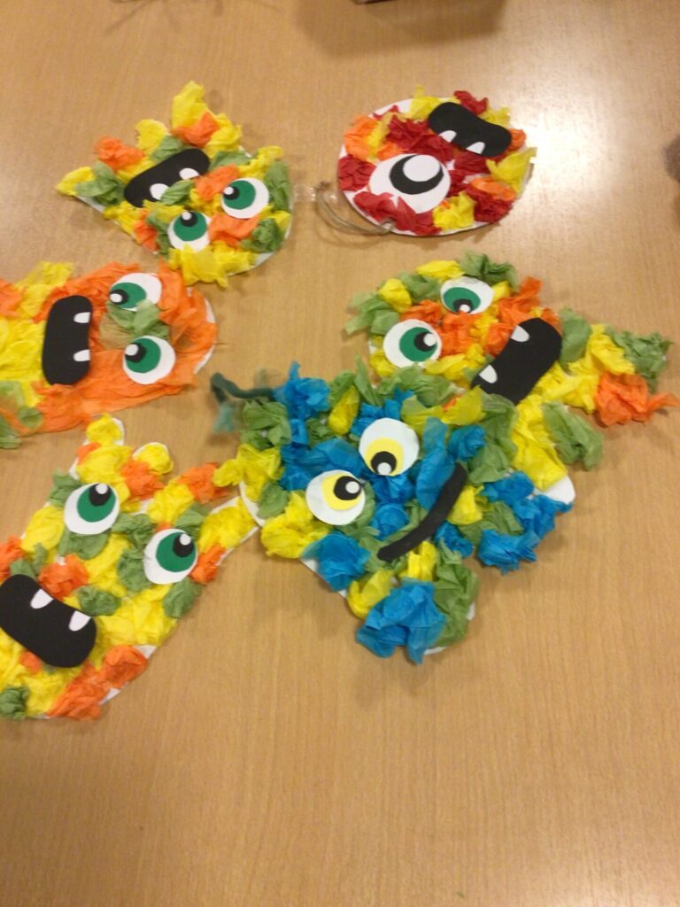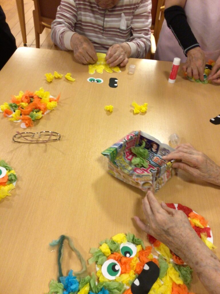 2025.10.8 ぽれぽれケアセンター白橿 ふわふわモンスター仲間たち作り お花紙で可愛いモンスターの仲間を作りました。 あれも可愛い、これも可愛いと個性豊かなモンスターが増えました。 (ぽれぽれケアセンター白橿 デイサービス)