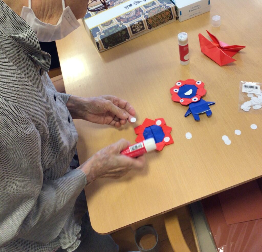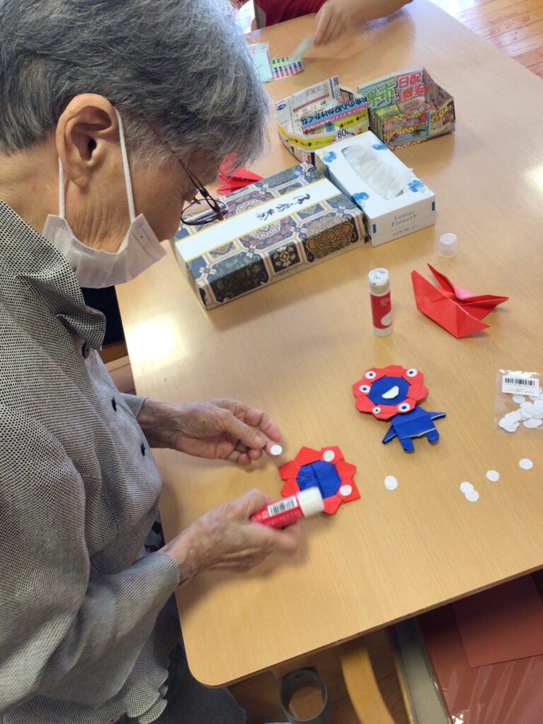 動画を観ながら、折り紙でミャクミャクをおりました。