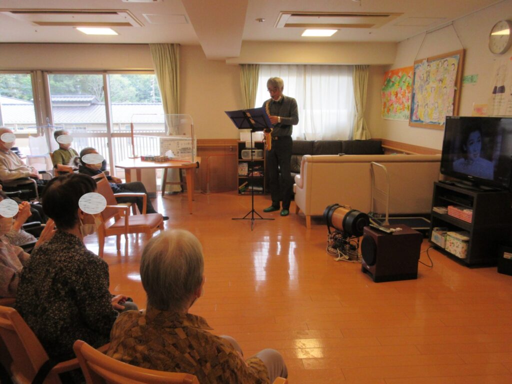 2025.10.24 ぽれぽれケアセンター白橿 アルトサックス演奏会 懐かしい歌をアルトサックスの美しい音色と共に楽しみました。 面会に来られたご家族さまと一緒に手拍子しながら歌われる姿が印象的でした。 穏やかな時間となりました。 (ぽれぽれケアセンター白橿 特養・ショートステイ)