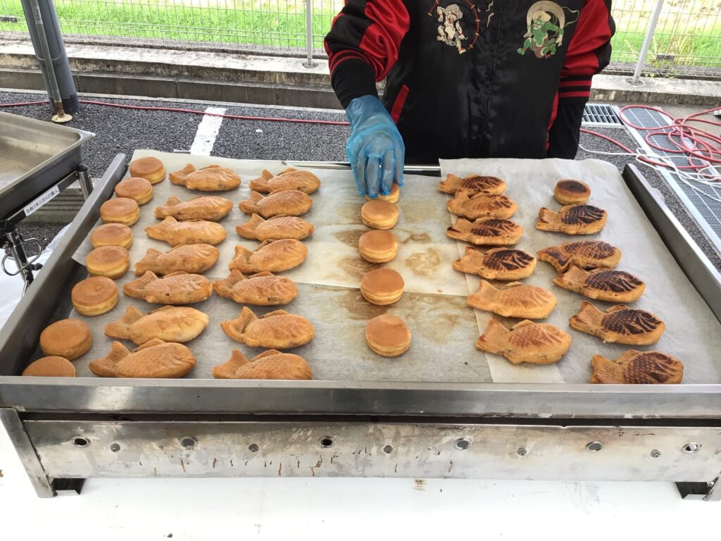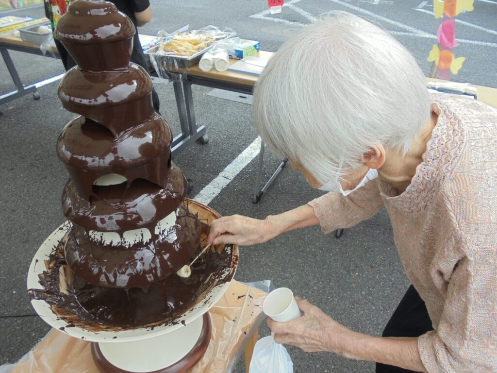屋外では、鉄板とチョコレートファウンテンを設置し焼き立てのおやつと、作り立てのチョコバナナを