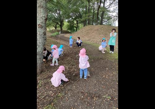 どんぐりが沢山落ちていて子どもたちは夢中で