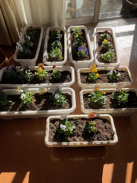 2025.11.10 ぽれぽれ登美ヶ丘 「お花の植え替え」 夏の雰囲気はすっかりなくなって 秋冬に向けて正面ベランダのお花の植え替えを一緒に行ってくださいました〜♪ まだ小さいですが、来館の際は少し上を見上げて頂けると幸いです〜⭐️ (ぽれぽれ登美ヶ丘)