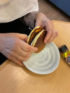 2025.11.10 ぽれぽれ四条大路 どら焼き 皆んなで美味しいどら焼き作り。 中身は、あんことクリーム.材料を混ぜるところから、トッピングまで。 様々などら焼きができ、自分で作ったのを、美味しく頂きました。 (ぽれぽれ四条大路)