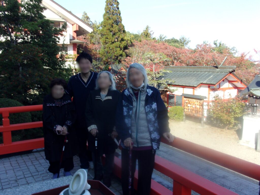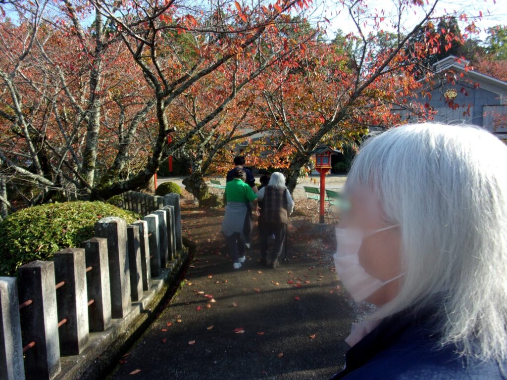 2025.11.10 ぽれぽれ東登美ヶ丘 初めての外出レク! 紅葉狩りに、御嶽山に出かけて来ました。 本殿にお参り境内を散歩しました。 持参の手作りゼリーで一休み。「気持ちいいねえ~」 「ええ所に連れて来てもろて」と皆さん満面の笑顔でした。 (ぽれぽれ東登美ヶ丘) KODAK Digital Still Camera KODAK Digital Still Camera KODAK Digital Still Camera