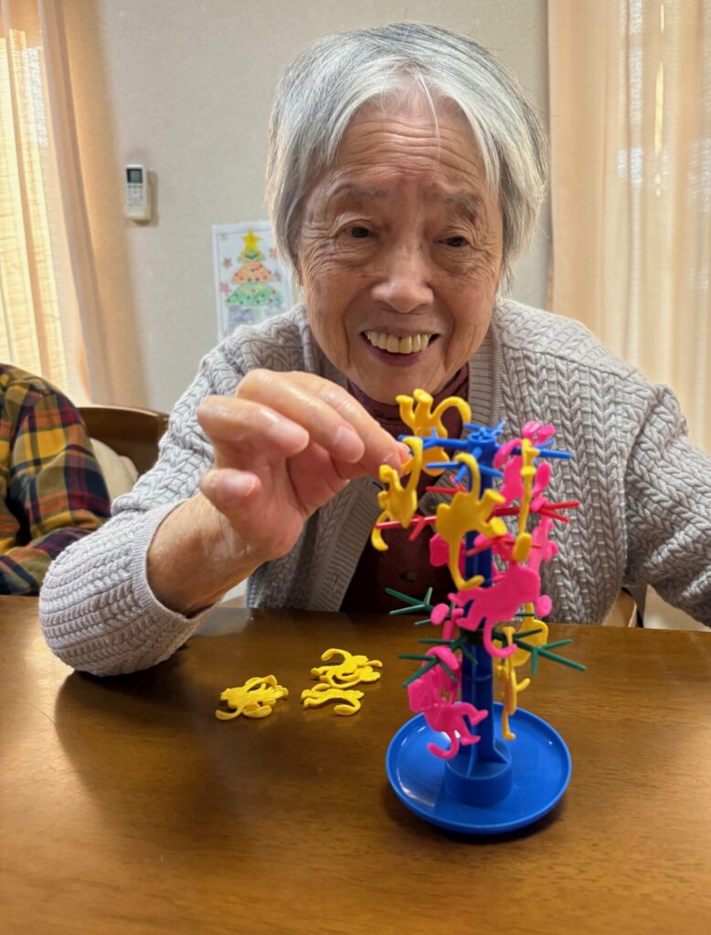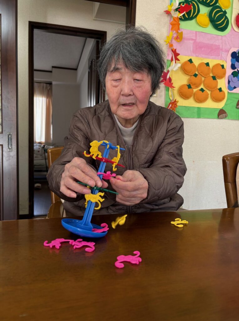2025.11.25 ぽれぽれ中和 レクリエーションその1 レクリエーションその1はバランスゲームをしました。 周りを落とさずにひっかけていくのはとても難しいようです。 それでも大変楽しんで頂けました。 (ぽれぽれ中和)