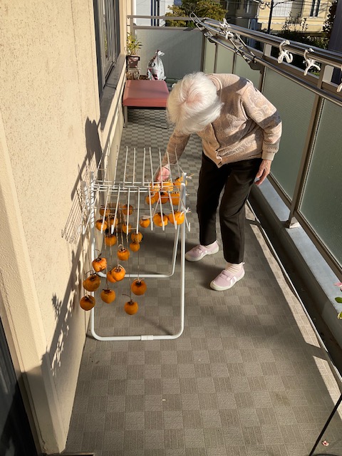 ベランダにいっぱいの柿を干して、食べ頃を待ちましょう〜⭐️