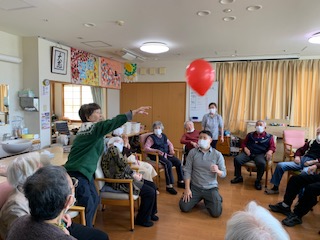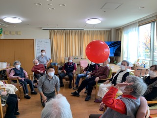 皆さん赤い風船に神経を集中させ、落とさないように必死です。