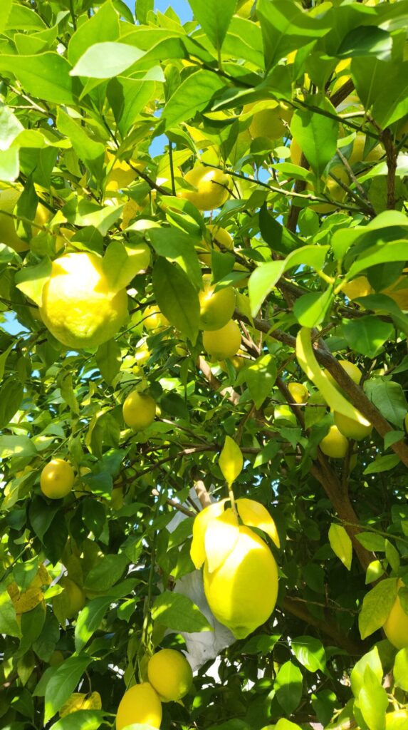 緑から次第に黄色く色づいていく様子を日々眺めていたレジデンス産のレモン、