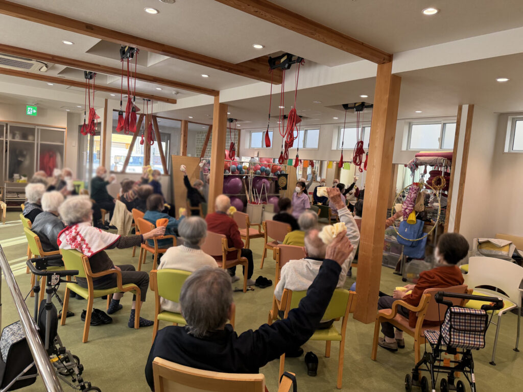 ご自宅でもできる体操を中心に、足や腰を伸ばしてストレッチをしたり