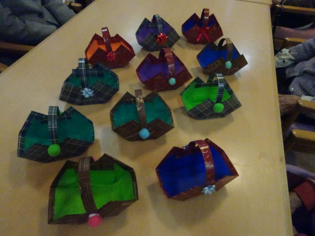 牛乳パックを使い、小物入れを作っていただきました。