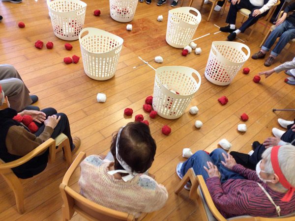 2025.12.9 ぽれぽれケアセンター白橿 秋の運動会の開催 フロアにて赤白に分かれて赤白ボールの競技等させて頂きました。 それぞれ協力してボールを投げられたりして楽しまれました。 (ぽれぽれケアセンター白橿 デイサービス)