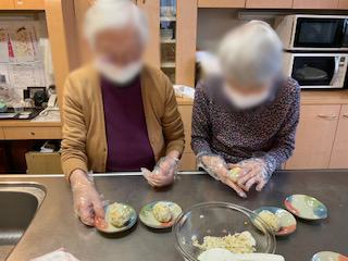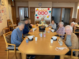 おにぎり作りを手伝っていただき、炊き上がったお鍋を皆さん「美味しいわ〜。」と