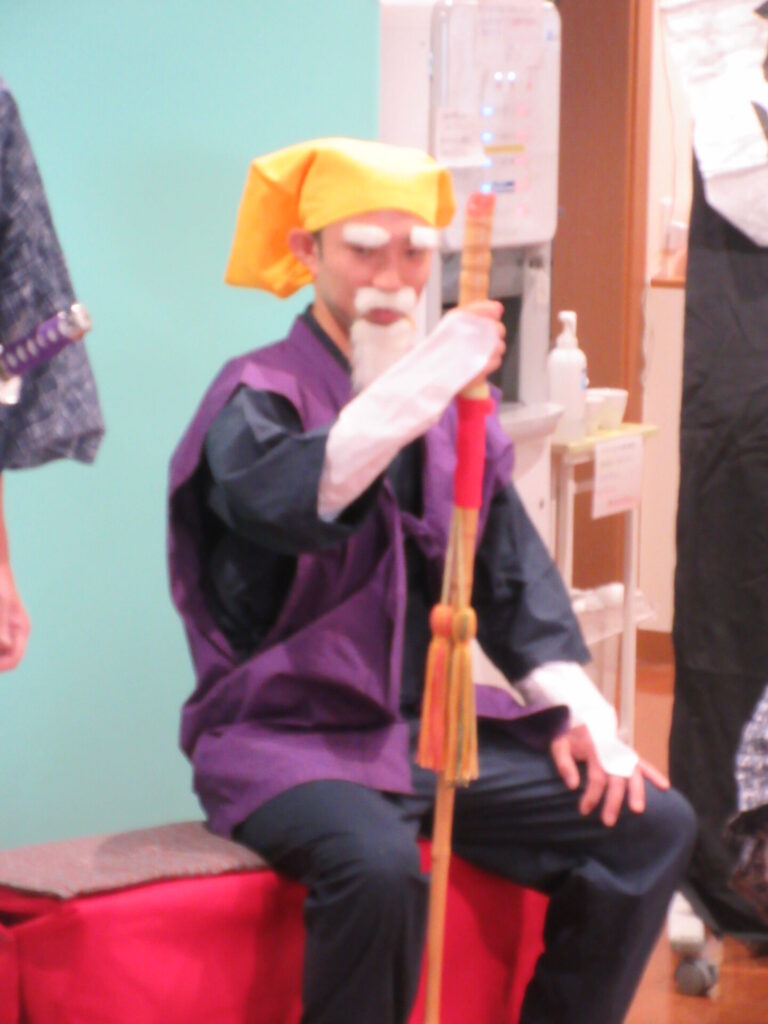 レクリエーションで来所してくださった劇団高円様から白羽の矢が立った久保田施設長( *´艸`)