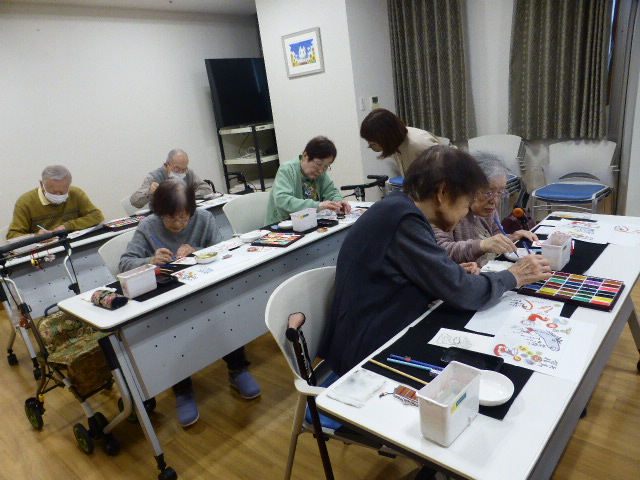 2025.12.22 ぽれぽれ学園前レジデンス 絵手紙教室 今年最後の絵手紙教室 来年の干支「馬」の絵を描きました。 見てください! 真剣に取り組まれている姿を!! 「楽しい~ 楽しい~」と熱心に描かれてました。 とても素敵な作品が出来上がりました♡ (ぽれぽれ学園前レジデンス)