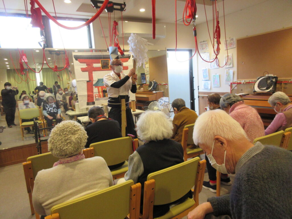 年初めのレクリエーションは毎年恒例となりました「ぽれ神社」です。