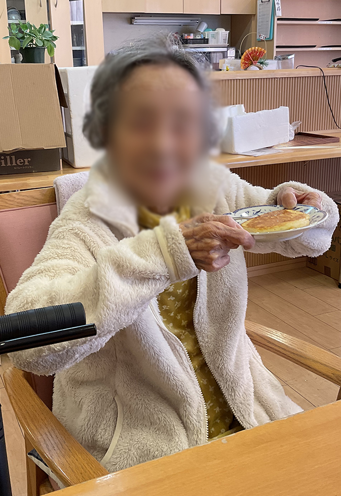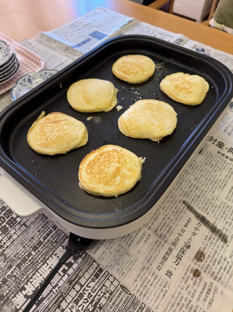 2026.1.14 ぽれぽれ四条大路 「皆様大好き♪おやつレク」 皆様いつも喜ばれるホットケーキを作りました。 ジャムをぬったり、はちみつをかけたりペロっと3枚ぐらいを あっとゆう間に召し上がられました。 (ぽれぽれ四条大路)