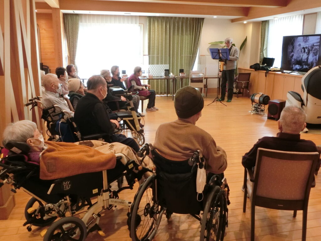演奏に合わせて歌われ楽しまれました。帰りには次回聞きたい曲のリクエストをされて