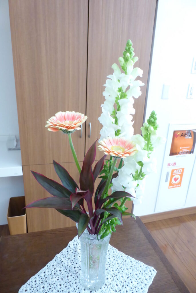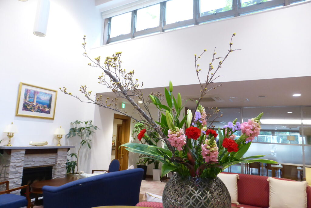 外気はまだまだ冷たいですが、ロビーの装花は
