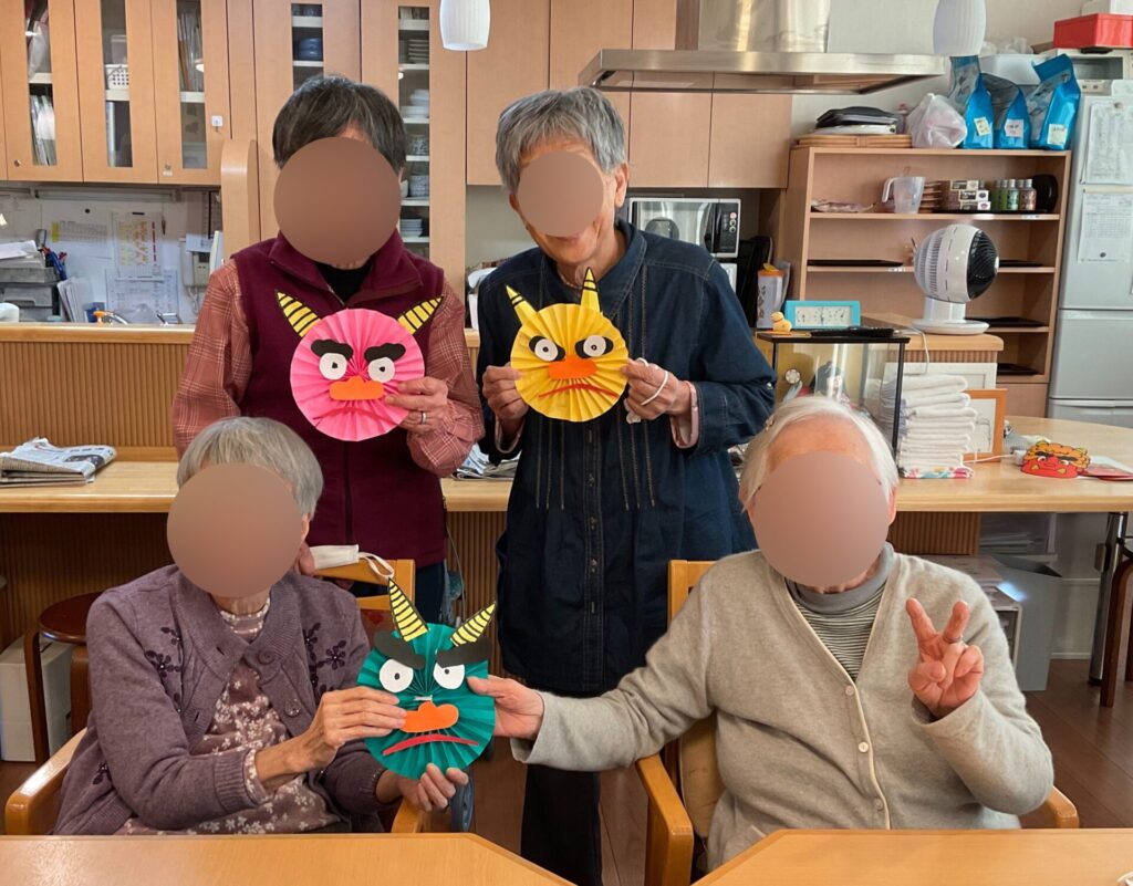 2026.2.6 ぽれぽれ四条大路 『2月の壁飾り』 皆様と一緒に2月の壁飾りを製作しました。 折り紙や画用紙を使って節分の鬼の顔作りに挑戦。 様々な表情の鬼が完成し賑やかな壁飾りが完成しました。 季節を感じながら楽しい時間となりました。 (ぽれぽれ四条大路)