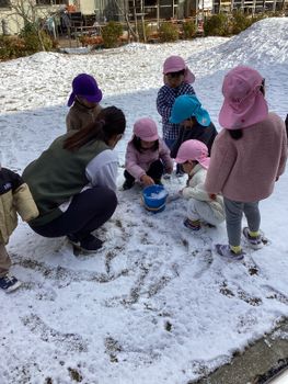 先日、雪が積もったので子どもたちと雪あそびをしました。