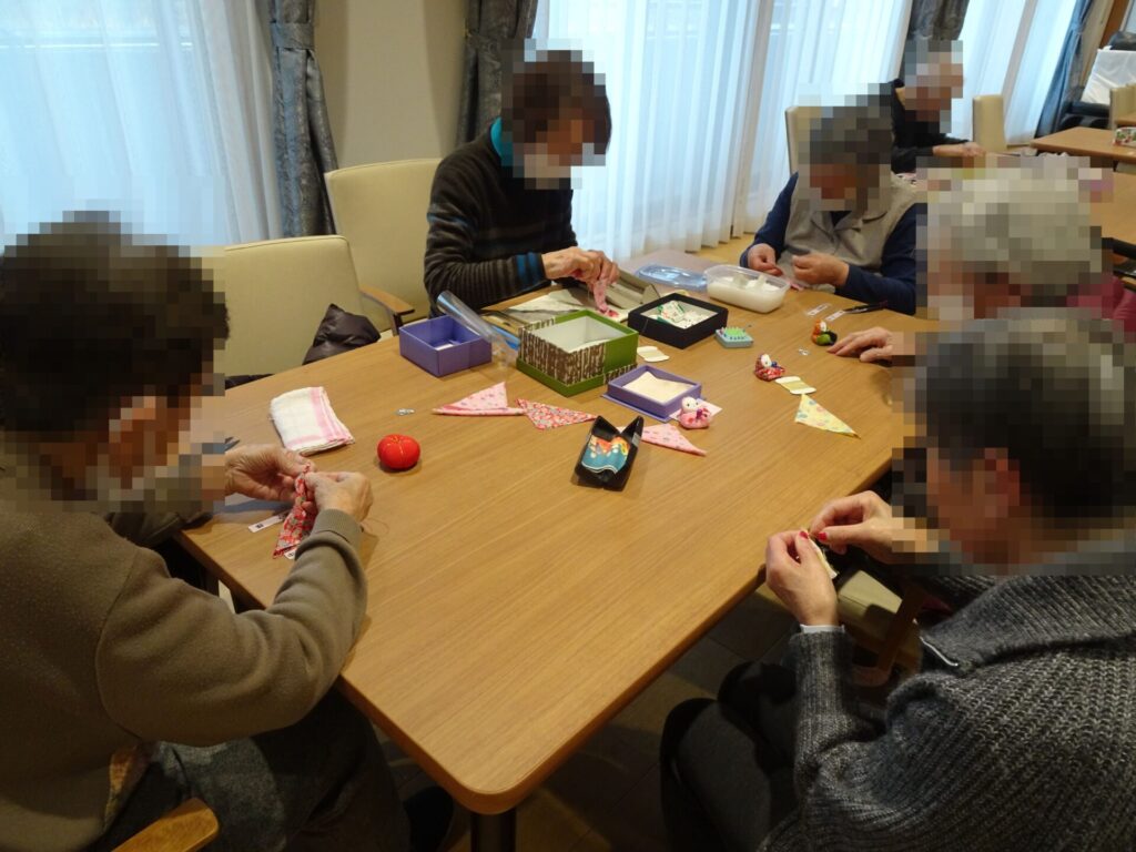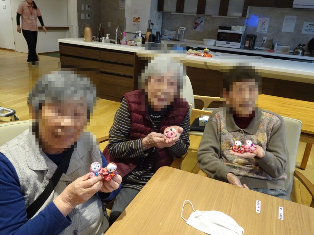 2026.3.2 ぽれぽれケアセンター青山 「お手玉人形作り」 今日の和裁教室はお手玉人形作りです。 細かな作業で、皆様集中され、黙々と作られていました。 出来上がった作品と一緒にハイポーズ♪ (ぽれぽれケアセンター青山・有料老人ホーム)