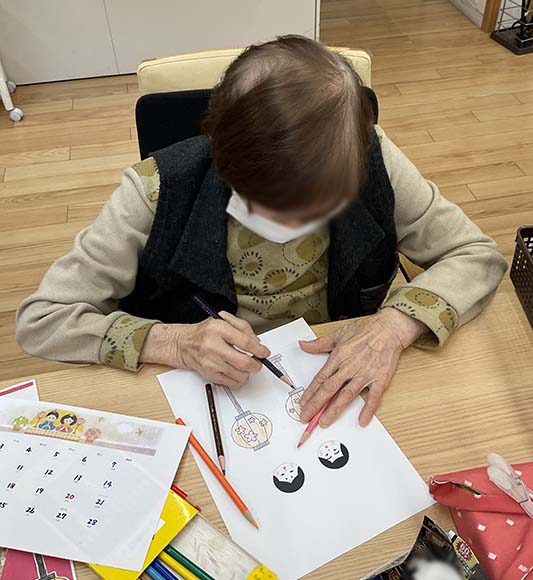 2026.3.2 ぽれぽれ四条大路 3月のカレンダー作り 3月はお雛様なので、梅の花とお雛様を作りました。 一生懸命作成しておられましたが、普段使わない指先を使って「疲れた~」と話されていました。 (ぽれぽれ四条大路)