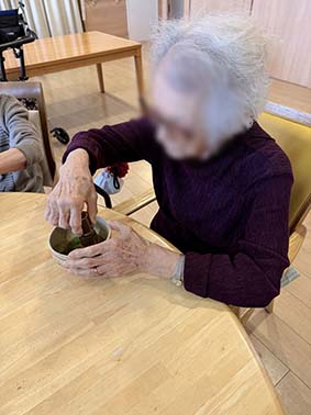 2026.3.6 ぽれぽれ四条大路 「ひなまつり」 本日はひなまつり。お抹茶をたて、桜餅と一緒にいただきました。 春の歌をかけながら、気分があがって踊りだすご利用者もいらっしゃり たのしいひと時でした。 (ぽれぽれ四条大路)