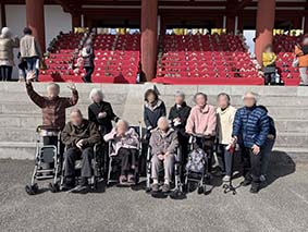 2026.3.9 ぽれぽれ四条大路 「平城宮跡へ」 近くの平城宮跡でひな人形の展示があり、皆様とお出掛けしました。 少し寒かったですが、皆様駐車場から朱雀門まで頑張って歩いて下さいました。 沢山のひな人形は圧巻でした。 (ぽれぽれ四条大路)
