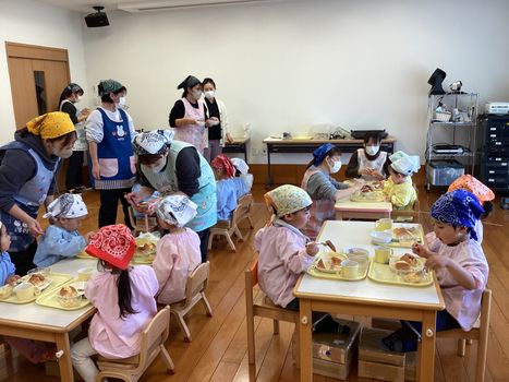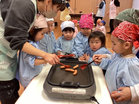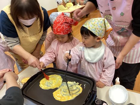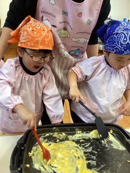 2歳児は卵を混ぜて焼いて スクランブルエッグを作りました。