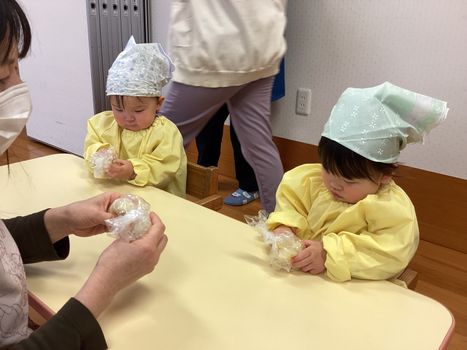 0歳児は袋に入ったじゃがいもを握ってマッシュポテト