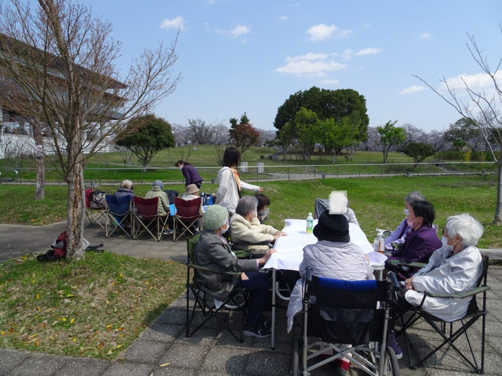 2026.4.3 ぽれぽれ四条大路 佐保川沿いの県立図書情報館でお花見🌸 佐保川沿いの県立図書情報館の敷地内の公園をお借りして、 桜を見ながら、お弁当を召し上がられました。 「外で食べるお弁当は美味しいね~」と仰りながら、 お花見を楽しまれていました。 (ぽれぽれ四条大路)