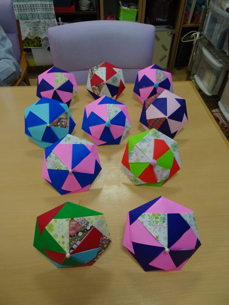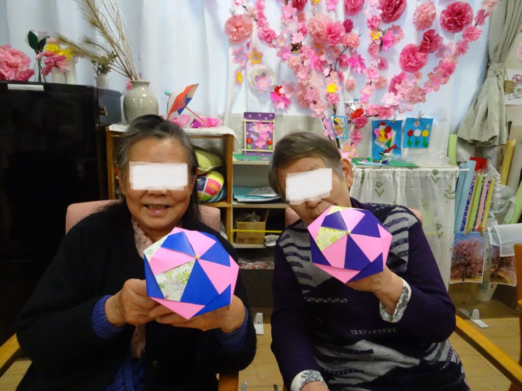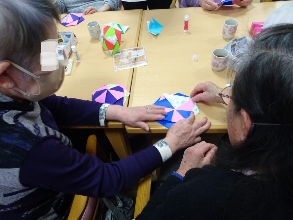 2026.4.13 ぽれぽれ四条大路 雨降りの日に傘を作りました☔ 午後から激しく、雨が降っていきました。 そこで、「傘を作って差して帰りましょうか~」と談笑が始まり、 折り紙を用意し、自然と手が進み始めました。 皆様、あっという間に完成され「間に合いましたね~」と笑顔が溢れていました。 (ぽれぽれ四条大路)